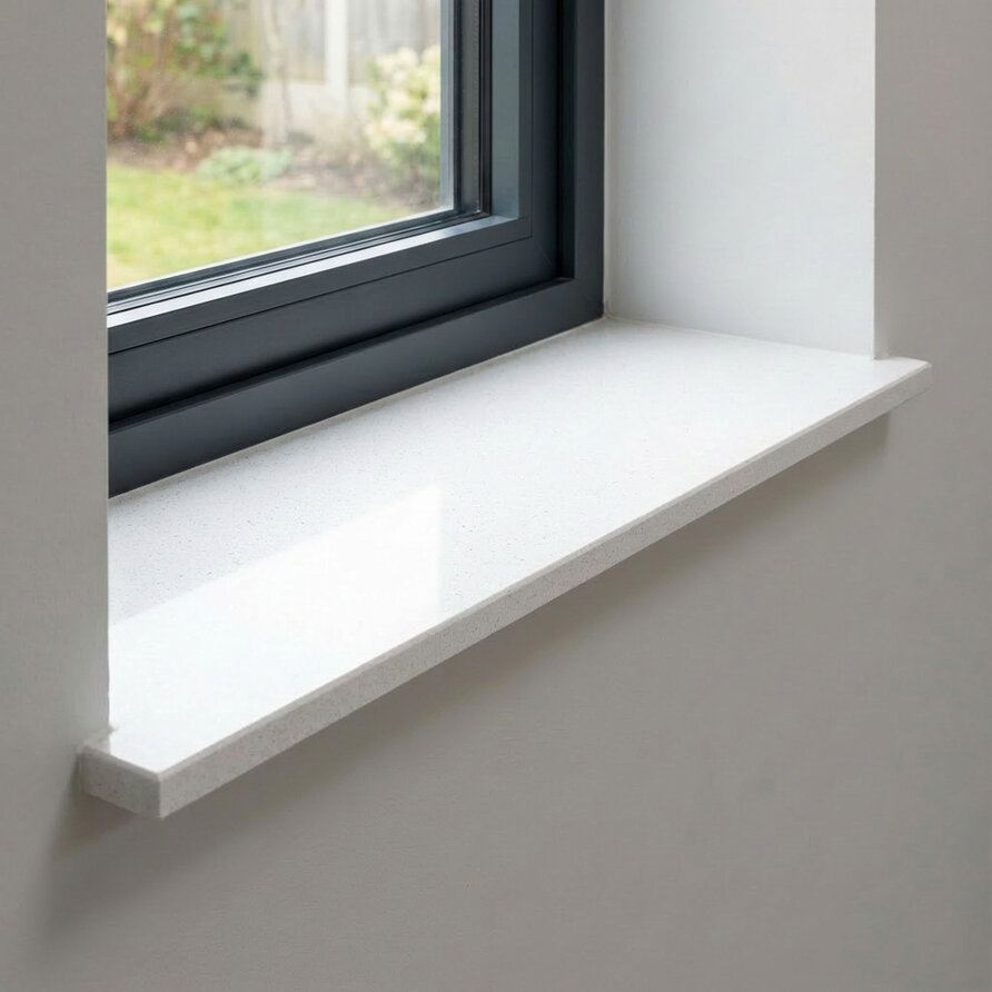 Eine schöne Weißnuance Fensterbank für den Innenbereich mit einem stilvollen Look, gefertigt aus edlem Gussmarmor. Eine Innenfensterbank in der Farbe Bianco weiß ist sehr ansprechend und fügt sich perfekt in eine umfangreiche Bandbreite von Einrichtungsst Lesen Sie mehr