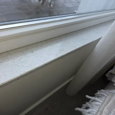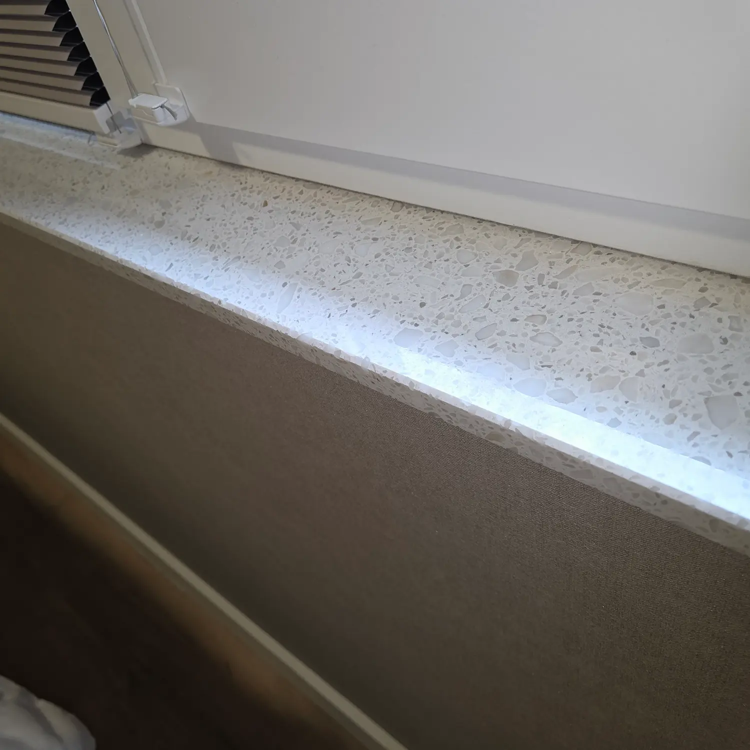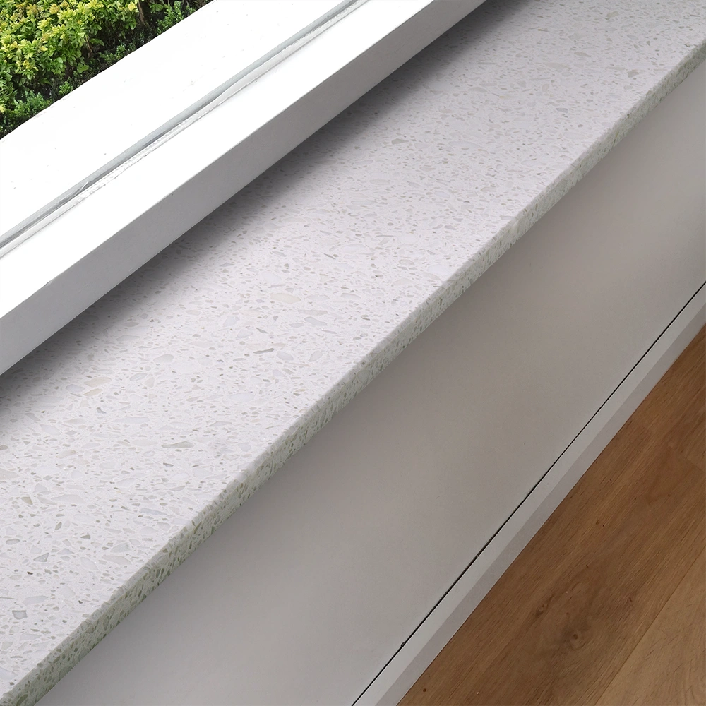 Fensterbank innen - Marmorkomposit poliert - Terrazzo weiß - 2 cm stark - Innenfensterbänke (Fenstersims) Kunststein / Komposit - Agglo Marmor / Gussmarmor - Nach Maß