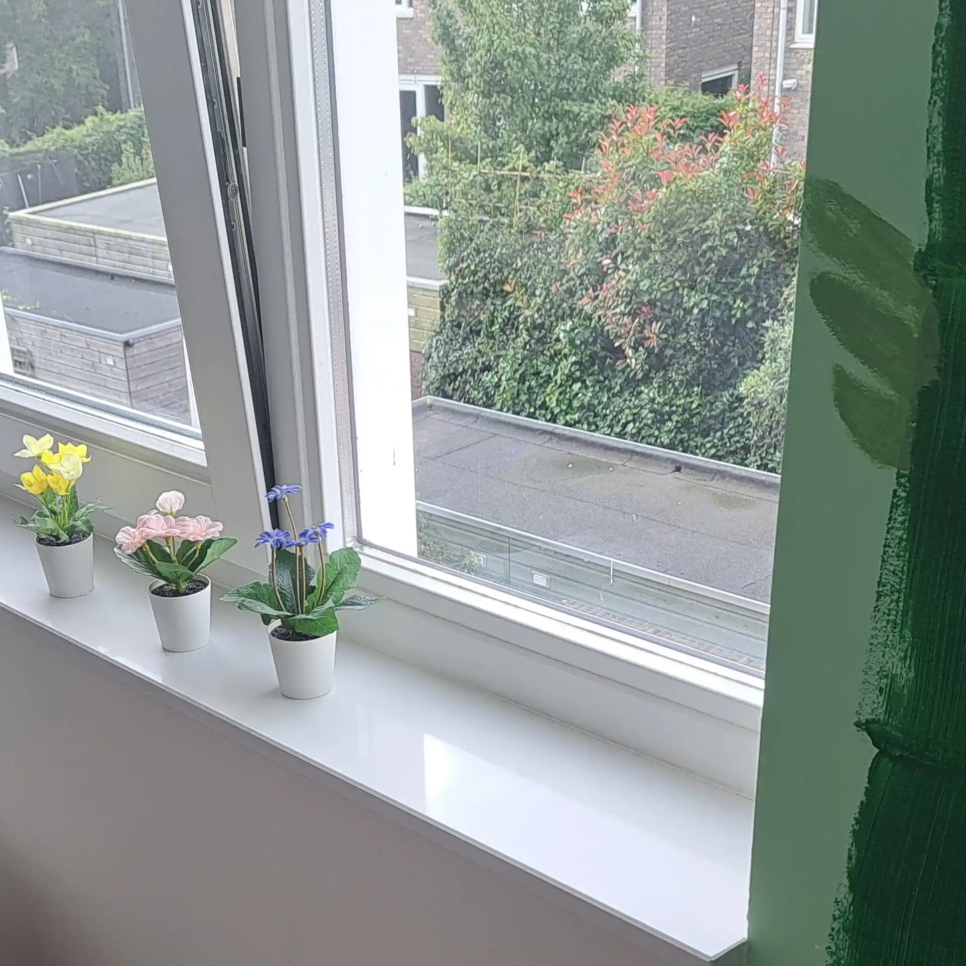 Eine schöne weiße Fensterbank für den Innenbereich mit einem modernen & minimalistischen Look, gefertigt aus edlem Quarz-Komposit. Ein schöner, homogener weißer Farbton mit Hochglanzoberfläche für einen stilvollen Fenstersims, die sich bestens für einen m Lesen Sie mehr