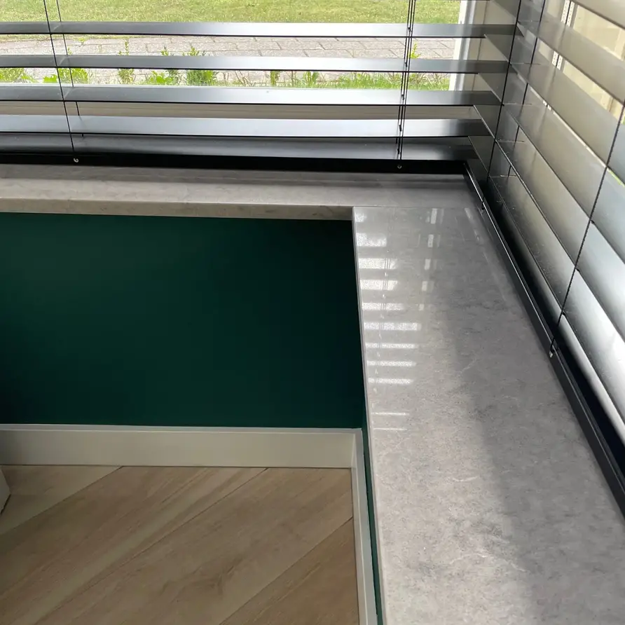 Eine schöne (hell)graue Naturstein Optik Fensterbank für den Innenbereich mit einem coolen Look, gefertigt aus edlem Quarz-Komposit. Ein schöner Quarz-Komposit-Farbton - für eine zeitlose Innenfensterbank - mit einer lebendigen, stilvollen & robusten Auss Lesen Sie mehr