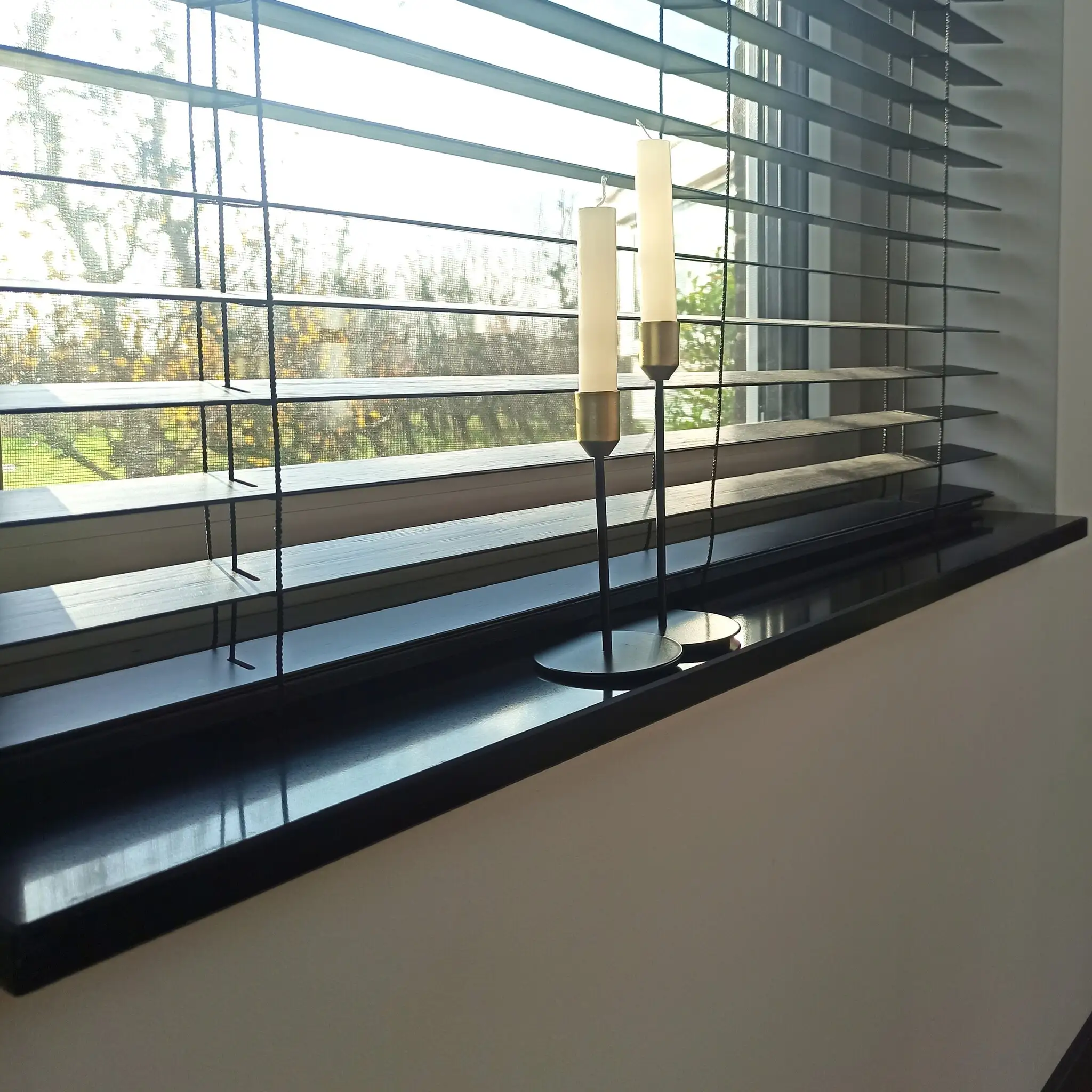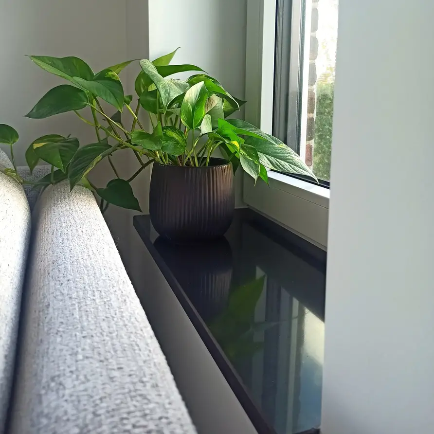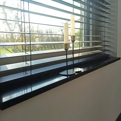 Fensterbank innen - Quarz-Komposit poliert - Schwarz - 2 cm stark - Breite: 10-50 cm - Länge: 10-200 cm - Nach Maß gefertigt - Innenfensterbänke (Fenstersims) Kunststein / Komposit (verbundwerkstoff) - Quarzkomposit / Quarzverbund. Eine schöne schwarze Fensterbank für den Innenbereich mit einem modernen & stilvollen Look, gefertigt aus edlem Quarz-Komposit. Diese schwarze Fensterbank innen aus Quarzkomposit ist die „schwärzeste“ Innenfensterbank im Sortiment von Kompositprofi.de. Eine schöne homogene Schwarznuance mit hochglänzender Oberfläche für einen stilvollen Fenstersims, die sich bestens für einen modernen Einrichtungsstil eignet.