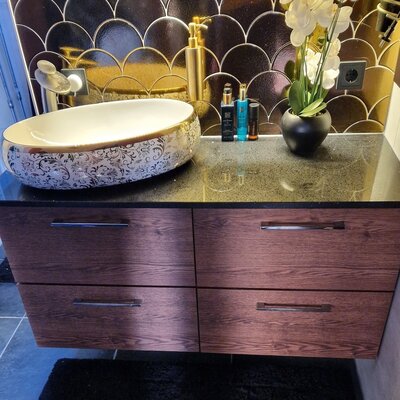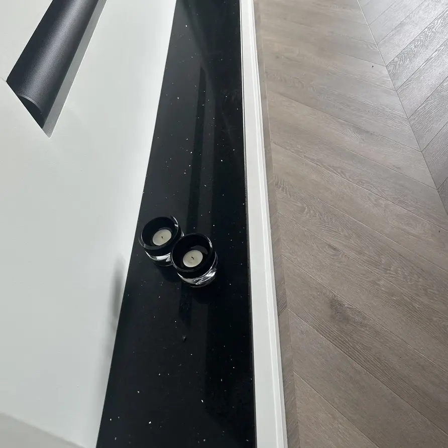 Wollen Sie erst einmal das Material, die Farbe und die Verarbeitung mit eigenen Augen anschauen? Bestellen Sie hier Ihr Materialmuster aus Quarz-Komposit in der Farbe schwarz Glitzer. Lesen Sie mehr
