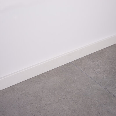 Eine schöne weiße Fußleiste / Sockelleiste für den Innenbereich mit einem modernen & minimalistischen Look, gefertigt aus edlem Gussmarmor. Ein besonderer Weißton mit sehr leichten Nuance in der Oberfläche. Lesen Sie mehr
