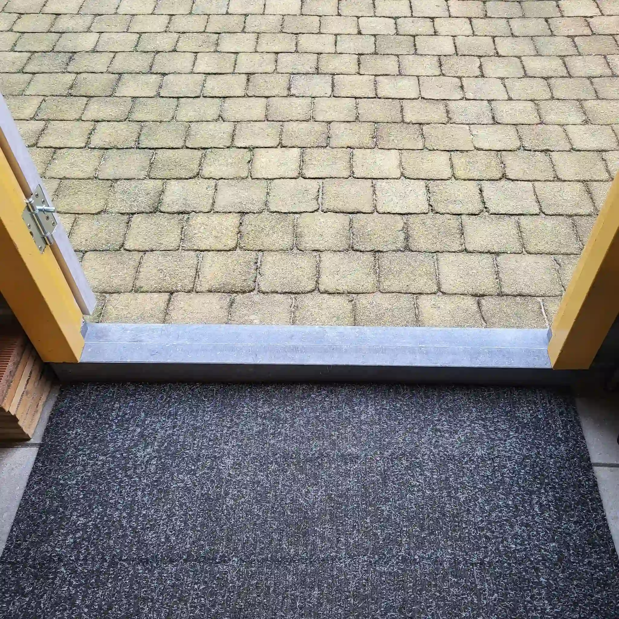 Eine schöne blaugraue Türschwelle (Schwelle für Außentür / Haustür) - mit SCHRÄGUNG - 6 cm stark - mit einem stilvollen & edlen Look, gefertigt aus hochwertigem belgischem Blaustein grob geschliffen. Lesen Sie mehr