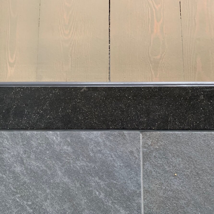 Türschwelle Innentüren - Marmorkomposit poliert - Blaustein Optik - 2 cm stark - Breite: 2-25 cm - Länge: 10-200 cm - Nach Maß gefertigt - Bodenschwelle Tür innen Kunststein / Komposit (verbundwerkstoff) - Agglo Marmor / Gussmarmor. Eine schöne Blaustein Optik Türschwelle poliert für den Innenbereich mit einem stilvollen Look, gefertigt aus edlem Gussmarmor. Die Agglo Marmor mit der „Blaustein“ geschliffen Optik Türschwelle innen ist eine lebendige & „robuste“ Türschwelle für Innentüren mit einer naturnahen Blaustein-Optik (dunkel geschliffen/ feingeschliffen). Während der „echte“, dunkel geschliffene belgische Blaustein eine etwas gröbere Marmorierung aufweisen kann, ist die Blaustein-Look-Farbe dieser Kunststein-Bodenschwelle etwas ruhiger, weicher und wirkt auch etwas „ebenmäßiger“. Ein schöner Anthrazit-Farbton mit Blaustein-Optik-Marmorierungen, der die schöne Optik von Blaustein mit dem optimalen Preis-Leistungs-Verhältnis (und anderen Vorteilen) von Agglo-Marmor (Marmor-Verbund) verbindet. Die attraktive Türschwelle innen aus Marmorkomposit Kunststein in der Farbe Blaustein-Look-Anthrazit kombiniert eine ansprechende Grundfarbe mit dezenten Marmorierungen. Sie passt - von klassisch bis modern - zu fast jedem Einrichtungsstil und ist eine der beliebtesten „Komposit-Farben“ Deutschlands.