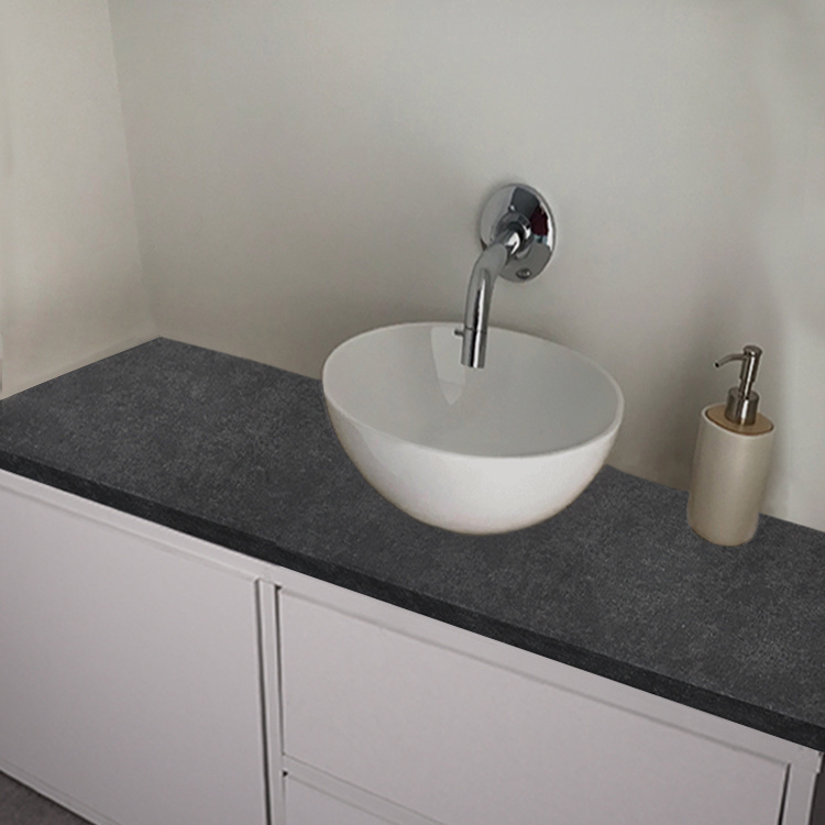 Diese Waschtischplatte aus Granit wird für Sie in unserem eigenen Naturstein-Sägewerk von erfahrenen Handwerkern mit Sorgfalt & Liebe zum Beruf - millimetergenau - auf Maß geschnitten & bearbeitet. Eine besondere Naturstein Platte für Aufsatzwaschbecken, ideal geeignet für einen zeitlosen, edlen Waschtisch. Diese spezielle Waschtischplatte wird normalerweise als „Platte“ für einen Waschtisch / Badezimmermöbel verwendet, wo sie als „Abdeckplatte“ auf den Unterschrank oder das Untergestell gelegt wird. Standardmäßig wird Ihre Waschtischplatte „gerade geschnitten“. Außerdem werden die Längsfront + die beiden kurzen Seiten fertig bearbeitet, d. h. geschliffen + mit einer gefasten Kante versehen. Diese wunderschöne Waschtischplatte in Topqualität Nero Assoluto Granit passt idealerweise zu modernen & schlichten Einrichtungsstilen.